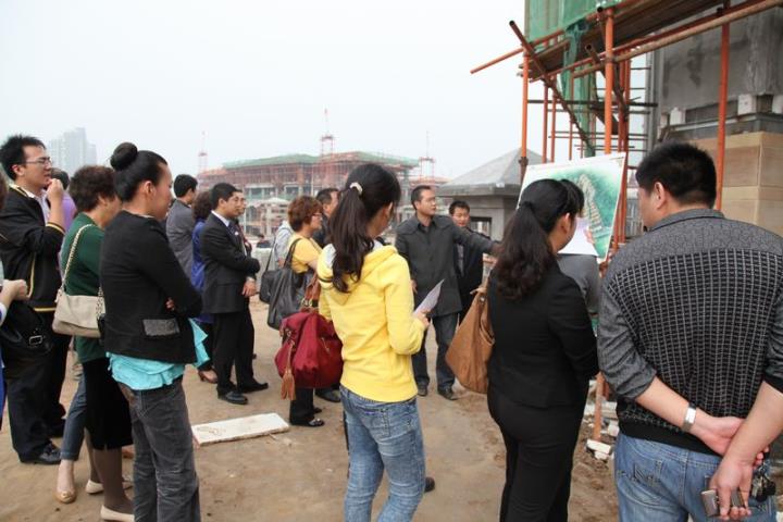 施工現(xiàn)場(chǎng)聽取房地產(chǎn)相關(guān)管理、技術(shù)人員介紹好經(jīng)驗(yàn)、好做法