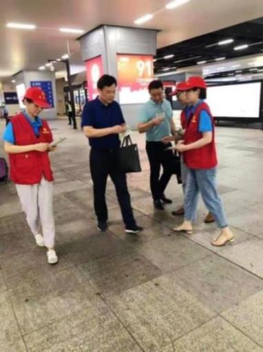 在高鐵出站口,志愿者們熱情的向過(guò)往旅客宣講《條例》,并發(fā)放宣傳彩頁(yè)200余份。