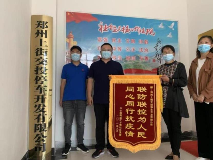 9月2日,上街交投停車公司收到鄭州市上街區(qū)中心路街道辦事處匯才社區(qū)贈送的寫有“聯(lián)防聯(lián)控為人民,同心同行抗疫情”的錦旗。社區(qū)書記白晶代表社區(qū)工作人員和廣大居民對停車公司的志愿者們在新冠肺炎疫情防控期間沖鋒在前,積極參與宣傳防疫知識、維護核酸檢測現(xiàn)場秩序、幫助社區(qū)做好疫情防控工作所做出的努力表示感謝。