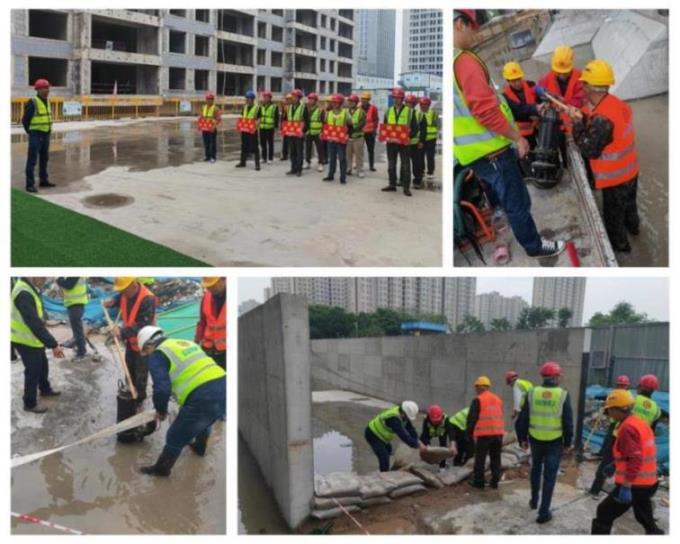 演練模擬項(xiàng)目駐地近日連續(xù)降雨,水勢猛漲,大量雨水向車庫內(nèi)聚集,將導(dǎo)致建筑基礎(chǔ)被浸泡,情況非常緊急。接險(xiǎn)情報(bào)告后,按照應(yīng)急預(yù)案迅速集結(jié)防汛應(yīng)急隊(duì)伍開展搶險(xiǎn)工作。救援隊(duì)立即對車庫口進(jìn)行加高加固,同時(shí)做好車庫降排水工作,經(jīng)過一個(gè)多小時(shí)的連續(xù)奮戰(zhàn),地庫雨水被排出,險(xiǎn)情得到控制。演練結(jié)束后,項(xiàng)目負(fù)責(zé)人對此次應(yīng)急演練情況進(jìn)行總結(jié)點(diǎn)評(píng)。