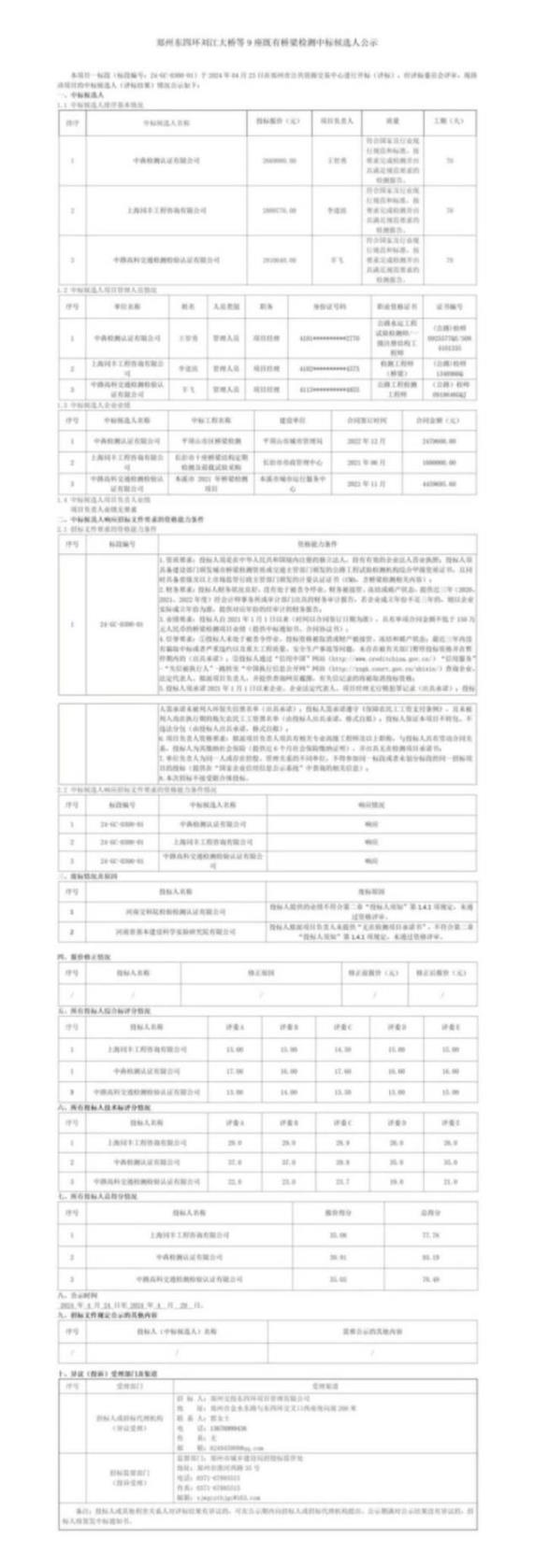 鄭州東四環(huán)劉江大橋等9座既有橋梁檢測(cè)中標(biāo)候選人公示
