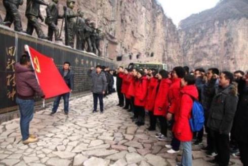 隨后,全體黨員干部徒步沿著S型隧道行進(jìn),看著腳下不可思議的人工道路,望著壁山上難以想象的手工鑿洞,親身體會(huì)了當(dāng)時(shí)回龍村民鑿山開路的艱辛及戰(zhàn)天斗地、挑戰(zhàn)自然的精神氣魄。在“回龍”精神的渲染下,全體黨員干部在張榮鎖和村民曾經(jīng)戰(zhàn)斗過的懸崖峭壁下,重溫了入黨誓詞,牢記身負(fù)使命,銘記入黨初心,繼續(xù)前行。