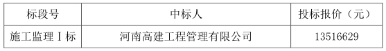 國(guó)道234線鄭州境國(guó)道310以南段(滎陽(yáng)喬樓至崔廟段)改建工程施工監(jiān)理于2018年7月23日上午9:00(北京時(shí)間)在鄭州市公共資源交易中心三樓第一開(kāi)標(biāo)室舉行開(kāi)標(biāo)會(huì)議。根據(jù)招標(biāo)文件規(guī)定,經(jīng)招標(biāo)人確定,現(xiàn)將中標(biāo)結(jié)果公告如下:
