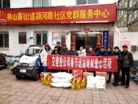 在2019年新春佳節(jié)即將來臨之際,為扎實(shí)推進(jìn)公司精神文明建設(shè)工作,開展好“我們的節(jié)日”主題活動(dòng),讓社區(qū)困難群眾度過一個(gè)舒心、溫暖的春節(jié),1月31日下午,鄭州交建投公司黨委負(fù)責(zé)人、監(jiān)事會(huì)主席王加喜,黨委委員、副總經(jīng)理柳林帶領(lǐng)機(jī)關(guān)黨支部黨員和部分志愿者到結(jié)對(duì)幫扶社區(qū)—林山寨辦事處潁河路社區(qū)開展向困難群眾“送溫暖、獻(xiàn)愛心”活動(dòng)。在社區(qū)服務(wù)中心,公司代表為困難群眾送去了米、面、油和水果等生活必須品,并帶去了新春的祝福。此次活動(dòng)的開展,既為困難群眾提供了物質(zhì)上的幫助,又給他們帶來了情感上的溫暖和精神上的鼓勵(lì),切實(shí)讓他們感受到黨和社會(huì)的真情關(guān)懷。
