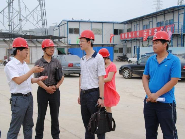 交建投公司副總經(jīng)理王加喜(左一)向李昊博士(左三)介紹項(xiàng)目情況 7月1日,省交通運(yùn)輸廳綜合規(guī)劃處李昊博士、市交通委規(guī)劃發(fā)展處陳建明副處長(zhǎng)等到客運(yùn)站施工現(xiàn)場(chǎng),就新建場(chǎng)站投資計(jì)劃進(jìn)度、政府專項(xiàng)資金政策落實(shí)和綜合運(yùn)輸體系規(guī)劃情況進(jìn)行了實(shí)地調(diào)研。