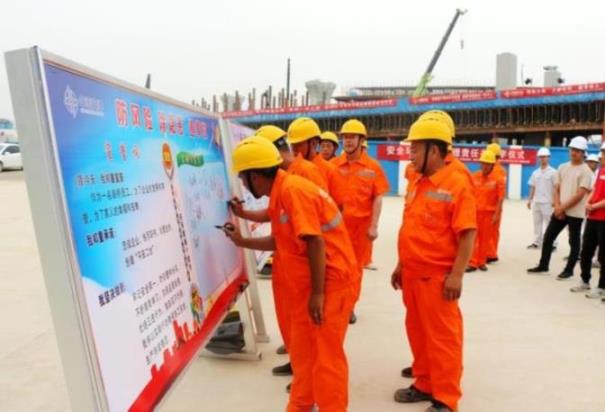 啟動儀式上,全體人員莊嚴宣誓,并簽名,同時施工單位與各崗位負責人、協(xié)作隊伍負責人簽訂了安全環(huán)保目標管理責任書。