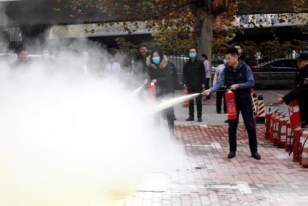 隨后,在樓前廣場(chǎng),公司職工輪流演練了干粉滅火器的使用、消防水槍水帶的連接等事項(xiàng)。