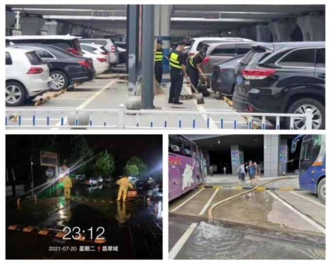 在S102空港服務(wù)區(qū)、G107服務(wù)區(qū),東廣場線下停車場,現(xiàn)場工作人員堅守崗位,嚴陣以待全面落實防汛應(yīng)急預(yù)案。停車服務(wù)區(qū)組成“防汛突擊隊”,緊急購置水泵、雨具、電表、電纜等防汛物資,連續(xù)抽排場區(qū)、罐區(qū)積水,搶修電力設(shè)施,確保服務(wù)區(qū)水、電、加油供應(yīng)?!八緳C之家”為因災(zāi)情滯留的司機朋友提供免費停車、淋浴等服務(wù),還為周圍不能因暴雨積水被困群眾提供熱水、臨時休息點。線下停車場為最大限度保護停泊車輛不受積水浸泡而遭受損失,快速組織現(xiàn)場工作人員清理積水,并在水位已退后,對場區(qū)內(nèi)設(shè)備進行全面檢查、檢修,為通電運營做好前期準備工作。