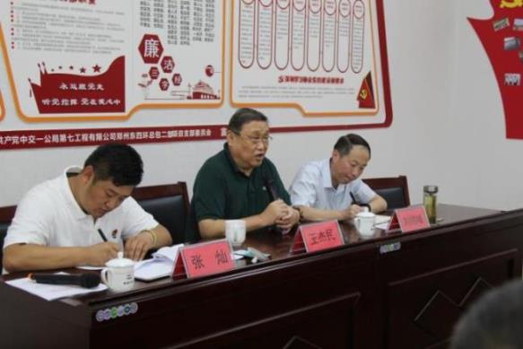 為迎接中國共產(chǎn)黨建黨97周年,深入貫徹學習十九大精神,6月29日下午,鄭州交建投東四環(huán)項目管理有限公司黨支部、鐵建中原工程有限公司東四環(huán)項目黨支部、中交一公局第七工程有限公司東四環(huán)項目黨支部聯(lián)合召開第一次基層黨組織“聯(lián)學聯(lián)建聯(lián)創(chuàng)”會議,會議宣布“聯(lián)學聯(lián)建聯(lián)創(chuàng)”活動正式啟動,并邀請原市委統(tǒng)戰(zhàn)部常務(wù)副部長王杰民到會宣講黨課。