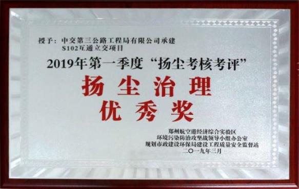 近日,京港澳高速、省道102與四港聯(lián)動大道組合式互通立交項目榮獲鄭州航空港經(jīng)濟綜合實驗區(qū)2019年第一季度“揚塵考核考評”揚塵治理優(yōu)秀獎,同時在航空港區(qū)環(huán)境攻堅辦開展的2019年第一季度全區(qū)300多家建筑工地?fù)P塵污染防治專項考核考評工作中,綜合成績?nèi)雵?0名,是入圍名單中的唯一一家市政項目。4月18日上午,項目又迎來了鄭州市揚塵污染防控考評組的檢查指導(dǎo),并得到檢查組的一致好評。